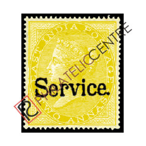 BRITISH INDIA MINT STAMP:BRITISH INDIA OFFICIALS : 1867-1873 OVERPRINTED"SERVICE". IN LARGER LETTERS.WMK ELEPHANT HEAD . 2A YELLOW