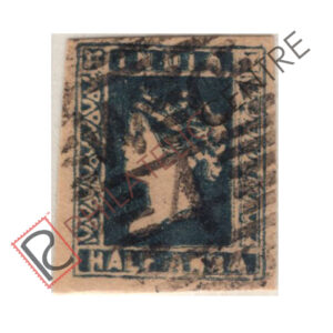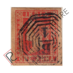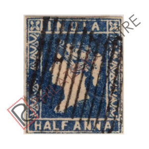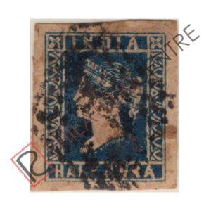BRITISH INDIA USED STAMP: 1854 1/2 & 1A LITHOGRAPHED STAMPS : 1854 OCTOBER 01 1855 SHEET WMK AS ABOVE. IMPERF DIE II (1855 JULY 07 & AUGUST 25, QUANTITY 15,20,000 OF WHICH 1,65,000 WERE DESTROYED). 1A DULL RED