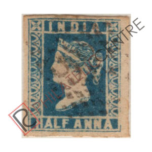 BRITISH INDIA USED STAMP: BRITISH INDIA OFFICIALS : 1866 AUGUST 01-1872 SMALL SERVICE OVPT. ON 1856-1864 EAST INDIA. NO WMK. 1/2A BLUE