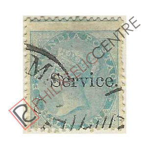 BRITISH INDIA USED STAMP: BRITISH INDIA OFFICIALS : 1866 AUGUST 01-1872 SMALL SERVICE OVPT. ON 1856-1864 EAST INDIA. NO WMK. 1/2A PALE BLUE