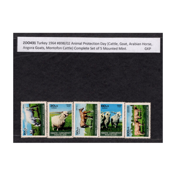 ZOO 431 Turkey 1964 #B98/02 Animal Protection Day (Cattle,Goat,Arabian Horse,Angora Goats, Montofon Cattle) Complete set of 5 Mounted Mint.