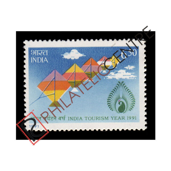 PC1518: INDIA MINT STAMP: 1991 NOVEMBER 15 INDIA TOURISM YEAR. 650 KITES,TOURISM LOGO