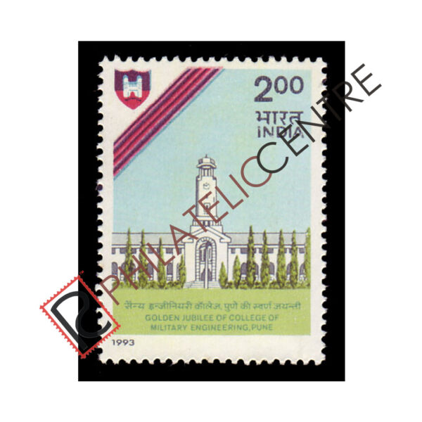 PC1588: INDIA MINT STAMP: 1993 NOVEMBER 08 50TH ANNIVERSARY OF COLLAGE OF MILITARY ENGINEERING,KIRKEE,PUNE. 200 COLLAGE BLDG.,LOGO