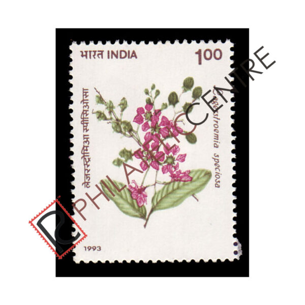 PC 1584: INDIA MINT STAMP: 1993 OCTOBER 09 INDIAN FLOWERING TREES . 100 LAGERSTROEMIA SPECIOSA-JARUL (PRIDE OF INDIA , CREPE FLOWER)