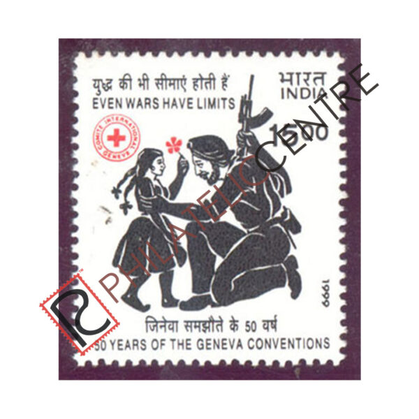 PC 1876: INDIA MINT STAMP: 1999 AUGUST 12 50TH ANNIVERSARY OF THE GENEVA CONVENTIONS.1500 SOIDIER,YOUNG GIRL