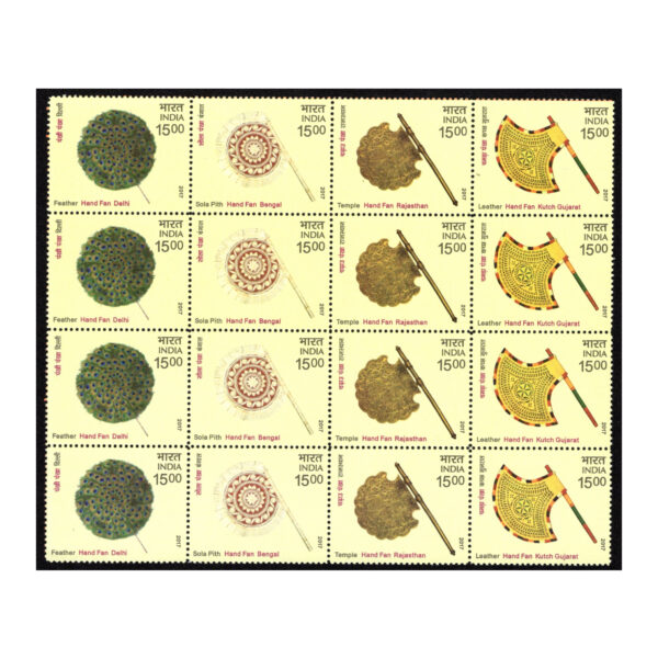 2017 DECEMBER 30 INDIAN HAND FAN: HORIZONTAL SETENANT STRIP, (‘FEATHER HAND FAN, DELHI’, ‘SOLA PITH HAND FAN, BENGAL’, ‘TEMPLE HAND FAN, RAJASTHAN’, ‘LEATHER HAND FAN, KUTCH, GUJARAT’)