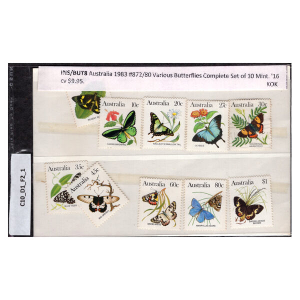 INS/BUT8 Australia 1983 #872/80 various Butterflies Complete Set of 10 Mint. ’16 cv $9.95.