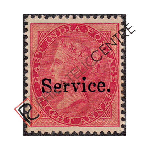 BRITISH INDIA MINT STAMP: BRITISH INDIA OFFICIALS : 1866 AUGUST 01-1872 SMALL SERVICE OVPT. ON 1856-1864 EAST INDIA. NO WMK. 8A CARMINE