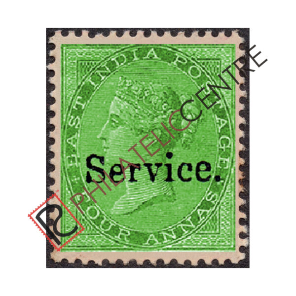 BRITISH INDIA MINT STAMP: BRITISH INDIA OFFICIALS : 1866 AUGUST 01-1872 SMALL SERVICE OVPT. ON 1856-1864 EAST INDIA. WMK. ELEPHANT HEAD. 4A GREEN