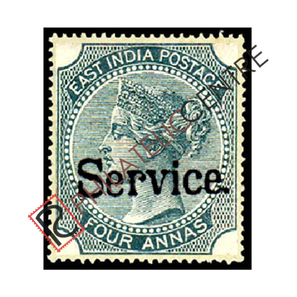 BRITISH INDIA MINT STAMP: BRITISH INDIA OFFICIALS : 1867-1873 OVERPRINTED”SERVICE”. IN LARGER LETTERS.WMK ELEPHANT HEAD . 4A PALE GREEN (DIE I)