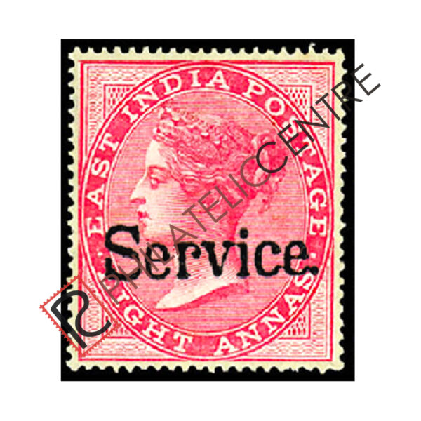 BRITISH INDIA MINT STAMP: BRITISH INDIA OFFICIALS : 1867-1873 OVERPRINTED”SERVICE”. IN LARGER LETTERS.WMK ELEPHANT HEAD . 8A PALE ROSE (DIE II)