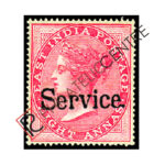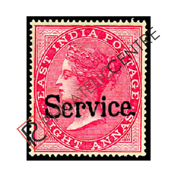 BRITISH INDIA MINT STAMP: BRITISH INDIA OFFICIALS : 1867-1873 OVERPRINTED”SERVICE”. IN LARGER LETTERS.WMK ELEPHANT HEAD . 8A ROSE (DIE II) (1868)
