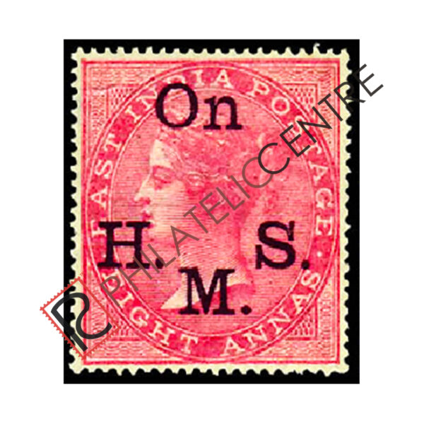 BRITISH INDIA MINT STAMP: BRITISH INDIA OFFICIALS : 1874-1882 OPTD.”ON H.M.S.”CLOSE SETTING IN BLACK ON EAST INDIA STAMPS. WMK ELEPHANT HEAD. 8A ROSE (DIE II)