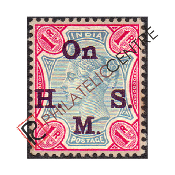 BRITISH INDIA MINT STAMP: BRITISH INDIA OFFICIALS : 1883-1899 OPTD.”ON H.M.S.”WIDER SETTING IN BLACK ON QUEEN VICTORIA STAMP.WMK SINGLE STAR. 1R GREEN & ROSE (1892)
