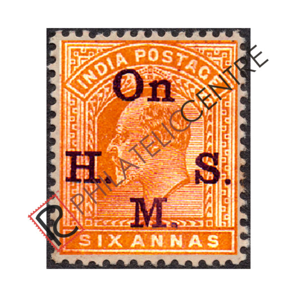 BRITISH INDIA MINT STAMP: BRITISH INDIA OFFICIALS : 1902-1909 KING EDWARD OPT.”ON H.M.S”. 6A OLIVE-BISTRE (1909)