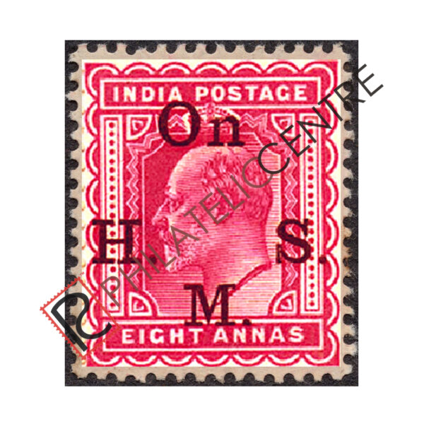 BRITISH INDIA MINT STAMP: BRITISH INDIA OFFICIALS : 1902-1909 KING EDWARD OPT.”ON H.M.S”. 8A CLARET