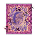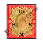 BRITISH INDIA MINT STAMP: BRITISH INDIA OFFICIALS : 1909 HIGH VALUES OF EDWARD OPT.WITH LARGER”ON H.M.S.” 10R GREEN & CARMINE