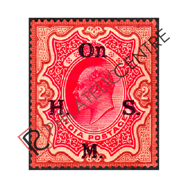 PCS49A: BRITISH INDIA MINT STAMP: 1909 HIGH VALUES OF EDWARD OPT.WITH LARGER”ON H.M.S.” 2R ROSE-RED & YELLOW BROWN