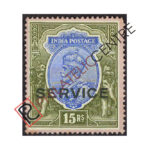 BRITISH INDIA MINT STAMP: BRITISH INDIA OFFICIALS : 1912-1913 GEORGE V SINGLE STAR WMK OPTD.”SERVICE”14MM ON LOWER VALUES & 21MM ON #145/153 RUPEE VALUES. 25R ORANGE & BLUE (1913)