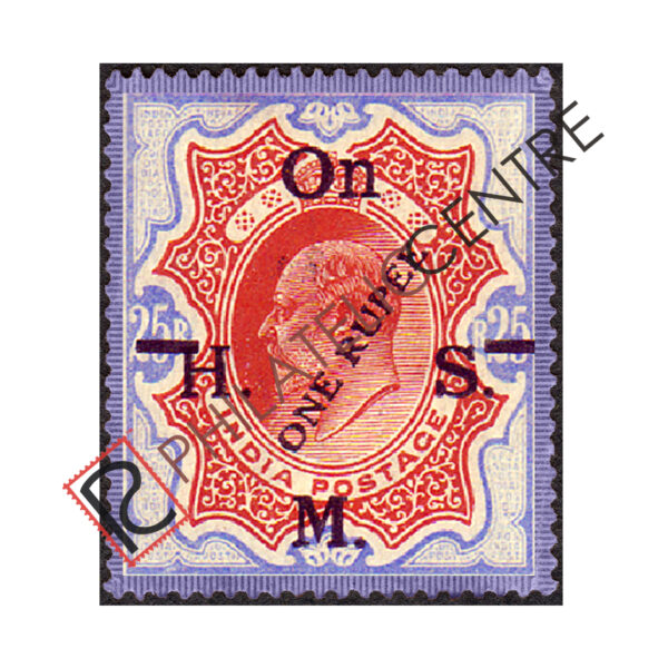 BRITISH INDIA MINT STAMP: BRITISH INDIA OFFICIALS : 1925 SURCHARGED ON 1909 EDWARD RUPEE VALUE SERVICE STAMPS. 1R ON 25R CHESTNUT & OILVE