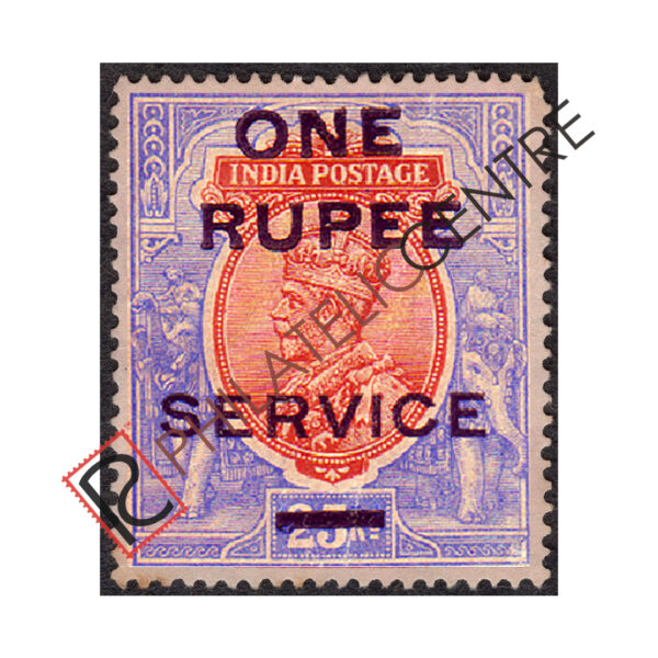 PCS73: BRITISH INDIA MINT STAMP: 1925 SURCHARGED ON 1912/3 GEORGE V RUPEE VALUE SERVICE STAMPS. 1R ON 25R ORANGE & BLUE