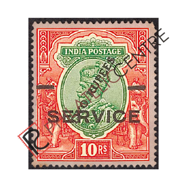 PCS74: BRITISH INDIA MINT STAMP: 1926 #S64 SURCHARGED. 2R ON 10R GREEN ON SCARLET