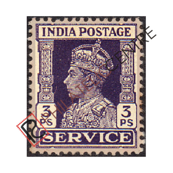 BRITISH INDIA MINT STAMP: BRITISH INDIA OFFICIALS : 1939 JUNE 1-1942 NEW DESIGNS FOR G.VI. WMK MULTIPLE STAR. 3P SLATE