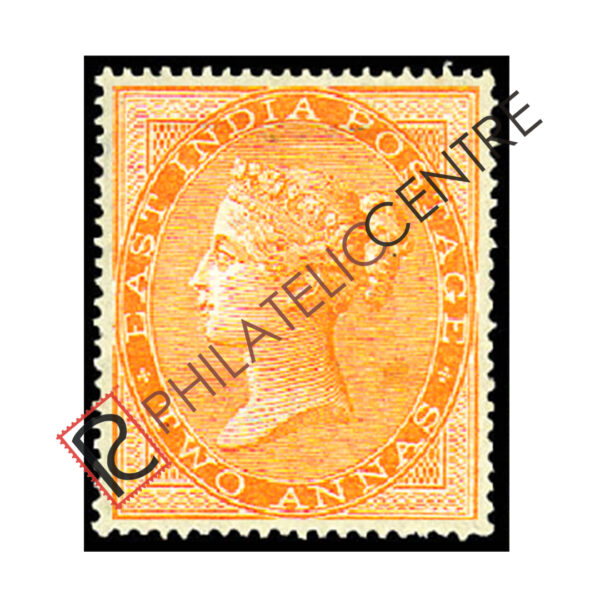 BRITISH INDIA MINT STAMP: EAST INDIA STAMP : 1856/64 PAPER YELLOWISH TO WHITE. NO WMK. 2A ORANGE