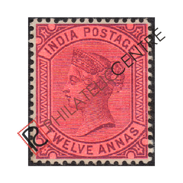 BRITISH INDIA MINT STAMP: EMPIRE OF INDIA : 1882 JANUARY 01-1890 QUEEN VICTORIA. WMK LARGE SINGLE STAR. 12A PURPLE/RED
