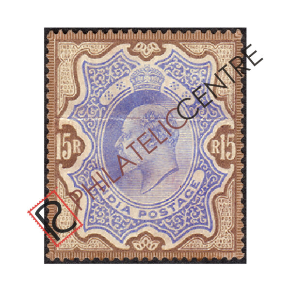 PC140: BRITISH INDIA MINT STAMP: 1902 AUGUST 9-1911 EDWARD VII WMK SINGLE STAR. 15R BLUE & OLIVE BROWN (1909)