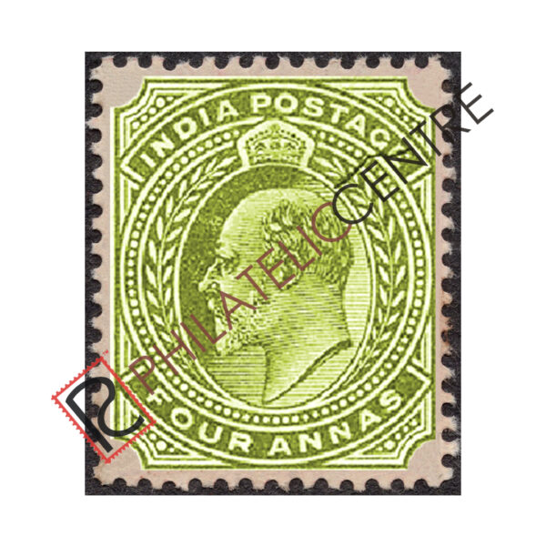 PC131: BRITISH INDIA MINT STAMP: 1902 AUGUST 9-1911 EDWARD VII WMK SINGLE STAR. 4A OLIVE (1903 APRIL 20)