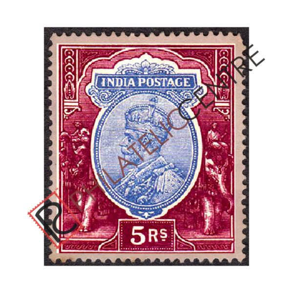 BRITISH INDIA MINT STAMP: KING GEORGE V : 1911 DECEMBER 01 1922 WMK SINGLE STAR. 5R ULTRAMARINE & VIOLET (1913)