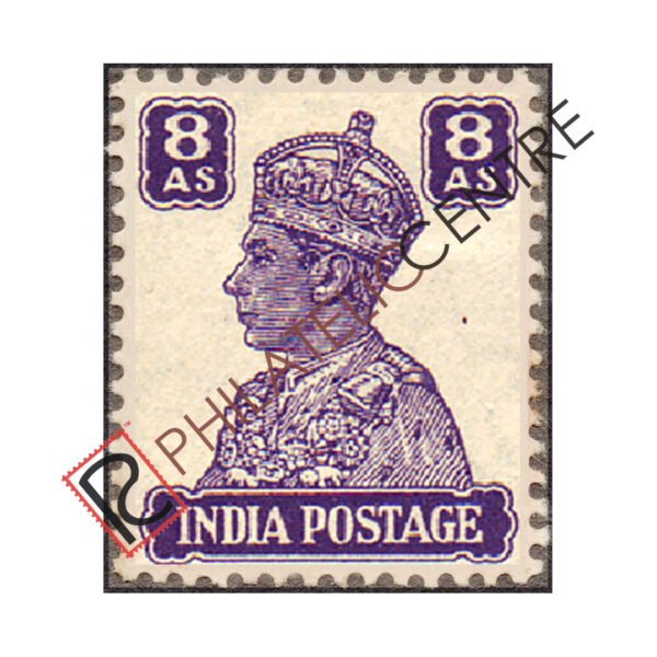 BRITISH INDIA MINT STAMP: KING GEORGE VI : 1940 OCTOBER 15-1943 DUE TO THE 2ND WORLD WAR,ALL VALUES-EXCEPT RUPEE VALUES,WERE MADE SMALLER & DESIGN CHANGED TO SAVE MONEY ON PAPER & PRINTING INK. TYPO.WMK MULTIPLE STAR. 8A SLATE-VIOLET (1941 MAY 15)