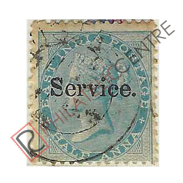 BRITISH INDIA USED STAMP: BRITISH INDIA OFFICIALS : 1866 AUGUST 01-1872 SMALL SERVICE OVPT. ON 1856-1864 EAST INDIA. WMK. ELEPHANT HEAD. 1/2A BLUE