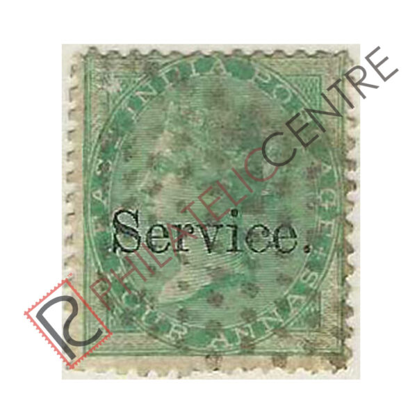 BRITISH INDIA USED STAMP: BRITISH INDIA OFFICIALS : 1866 AUGUST 01-1872 SMALL SERVICE OVPT. ON 1856-1864 EAST INDIA. WMK. ELEPHANT HEAD. 4A GREEN