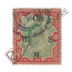 BRITISH INDIA USED STAMP: BRITISH INDIA OFFICIALS : 1909 HIGH VALUES OF EDWARD OPT.WITH LARGER”ON H.M.S.” 5R ULTRAMARINE & VIOLET