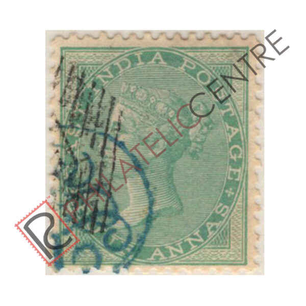 BRITISH INDIA USED STAMP: CROWN COLONY : 1865 PAPER WHITE TO YELLOWISH. WMK ELEPHANT HEAD. 4A GREEN