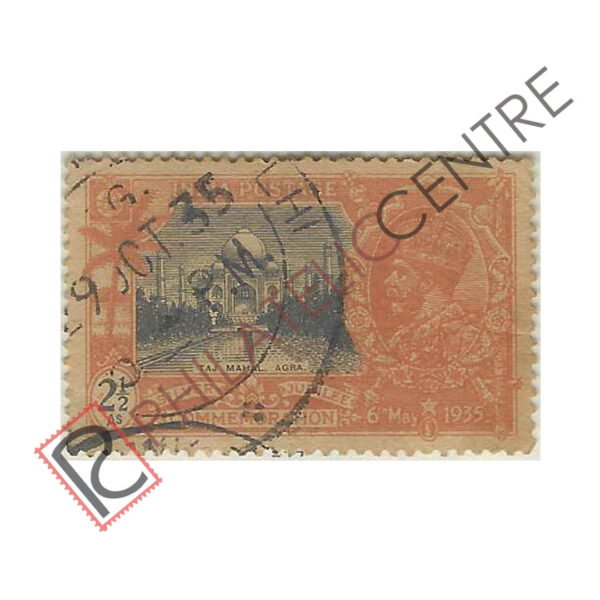 BRITISH INDIA USED STAMP: DELHI SPECIMENS : 1935 MAY 06 SILVER JUBLIEE. LITHO.SHEETS OF 144 I.E. 12 ROWS OF 12. WMK MULTIPLE STAR POINTING RIGHT. 1 1/4A TAJ MAHAL – BLACK & ORANGE