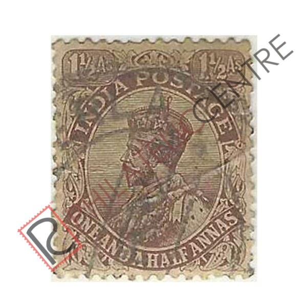 BRITISH INDIA USED STAMP: KING GEORGE V : 1911 DECEMBER 01 1922 WMK SINGLE STAR. 1 1/2A CHOCOLATE (1921)’ANNAS’