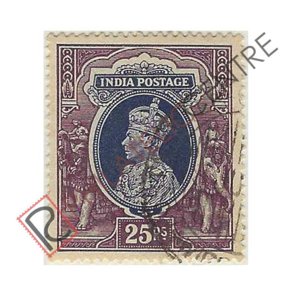 BRITISH INDIA USED STAMP: KING GEORGE VI : 1937 AUGUST 23 (9 PIES & 1 ANNA); OTHERS 1937 DECEMBER 15-1940 NEW DESIGNS DEPICTING GEORGE VI. TYPO. WMK MULTIPLE STAR. P13 1/2X14 OR 2A TO 12A PICTORIALS 14X13 1/2. 25R SLATE VIOLET & PURPLE