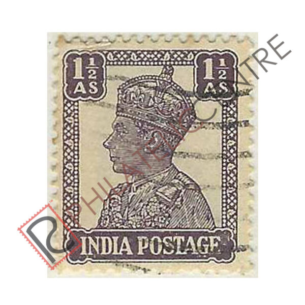 BRITISH INDIA USED STAMP: KING GEORGE VI : 1940 OCTOBER 15-1943 DUE TO THE 2ND WORLD WAR,ALL VALUES-EXCEPT RUPEE VALUES,WERE MADE SMALLER & DESIGN CHANGED TO SAVE MONEY ON PAPER & PRINTING INK. TYPO.WMK MULTIPLE STAR. 1 1/2A DULL VIOLET (LITHO) (1942 DECEMBER 1)