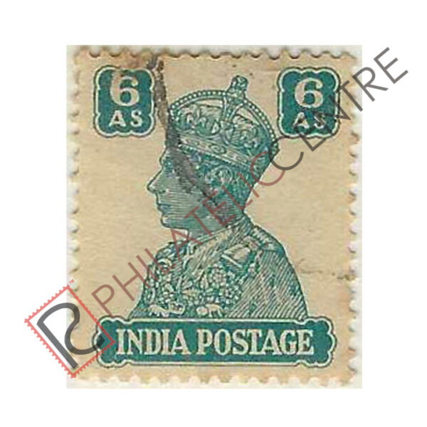 BRITISH INDIA USED STAMP: KING GEORGE VI : 1940 OCTOBER 15-1943 DUE TO THE 2ND WORLD WAR,ALL VALUES-EXCEPT RUPEE VALUES,WERE MADE SMALLER & DESIGN CHANGED TO SAVE MONEY ON PAPER & PRINTING INK. TYPO.WMK MULTIPLE STAR. 6A TURQUOISE GREEN (1941 MAY 15)