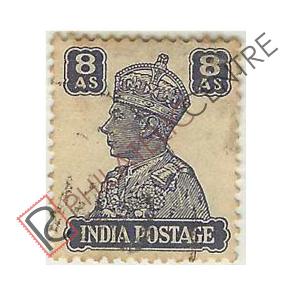 BRITISH INDIA USED STAMP: KING GEORGE VI : 1940 OCTOBER 15-1943 DUE TO THE 2ND WORLD WAR,ALL VALUES-EXCEPT RUPEE VALUES,WERE MADE SMALLER & DESIGN CHANGED TO SAVE MONEY ON PAPER & PRINTING INK. TYPO.WMK MULTIPLE STAR. 8A SLATE-VIOLET (1941 MAY 15)