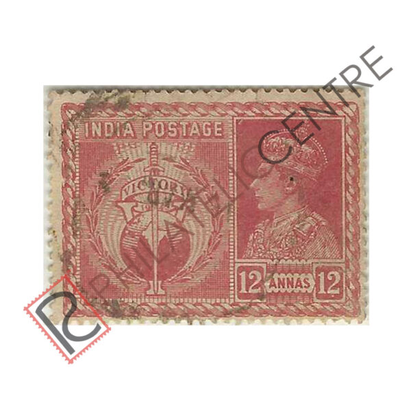 BRITISH INDIA USED STAMP: KING GEORGE VI : 1946 JANUARY 02-FEBRUARY 08 ISSUED TO COMMEMORATE THE VICTORY OF ALLIED FORCES IN THE 2ND WORLD WAR.WMK MULTIPLE STAR. 12A CLARET