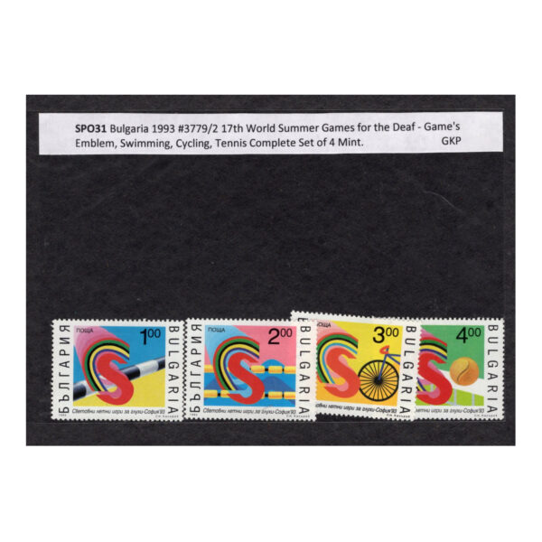 SPO31 Bulgaria 1993 #3779/2 17th World Summer Game’s Emblem, Swimming, Cycling, Tennis Complete Set of 4 Mint.