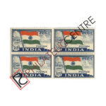 INDIA MINT BLOCK OF FOUR: 1947 NOVEMBER 21- DECEMBER 15 INDEPENDENCE. TEARDROP