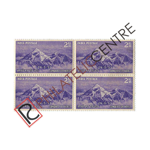 INDIA MINT BLOCK OF FOUR: 1953 OCTOBER 02 CONQUEST OF MT EVEREST. 2A MT EVEREST