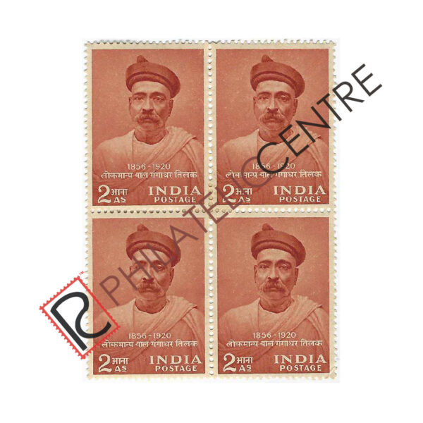 INDIA MINT BLOCK OF FOUR: 1956 JULY 23 BAL GANGADHAR TILAK (PATRIOT). 2A TILAK
