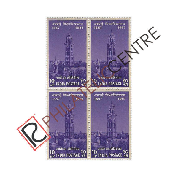 INDIA MINT BLOCK OF FOUR: 1957 DECEMBER 31 CENTENARY OF INDIAN UNIVERSITIES. 10NP BOMBAY UNIVERSITY