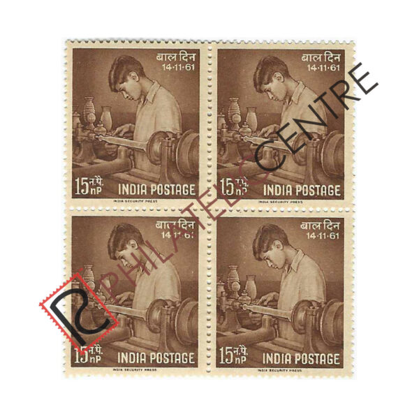 INDIA MINT BLOCK OF FOUR: 1961 SEPTEMBER 01 BIRTH CENTANARY OF VISHUN NARAYAN BHATKHANDE(MUSICIAN). 15NP VOCATIONAL TRAINING